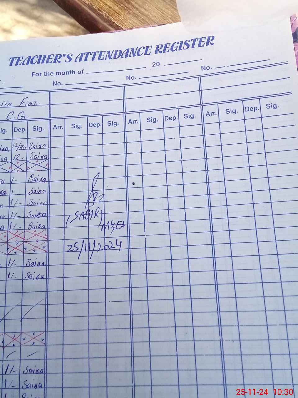 | CNIC | Full Name | Designation | R/C | Absence During Last Calender Month |