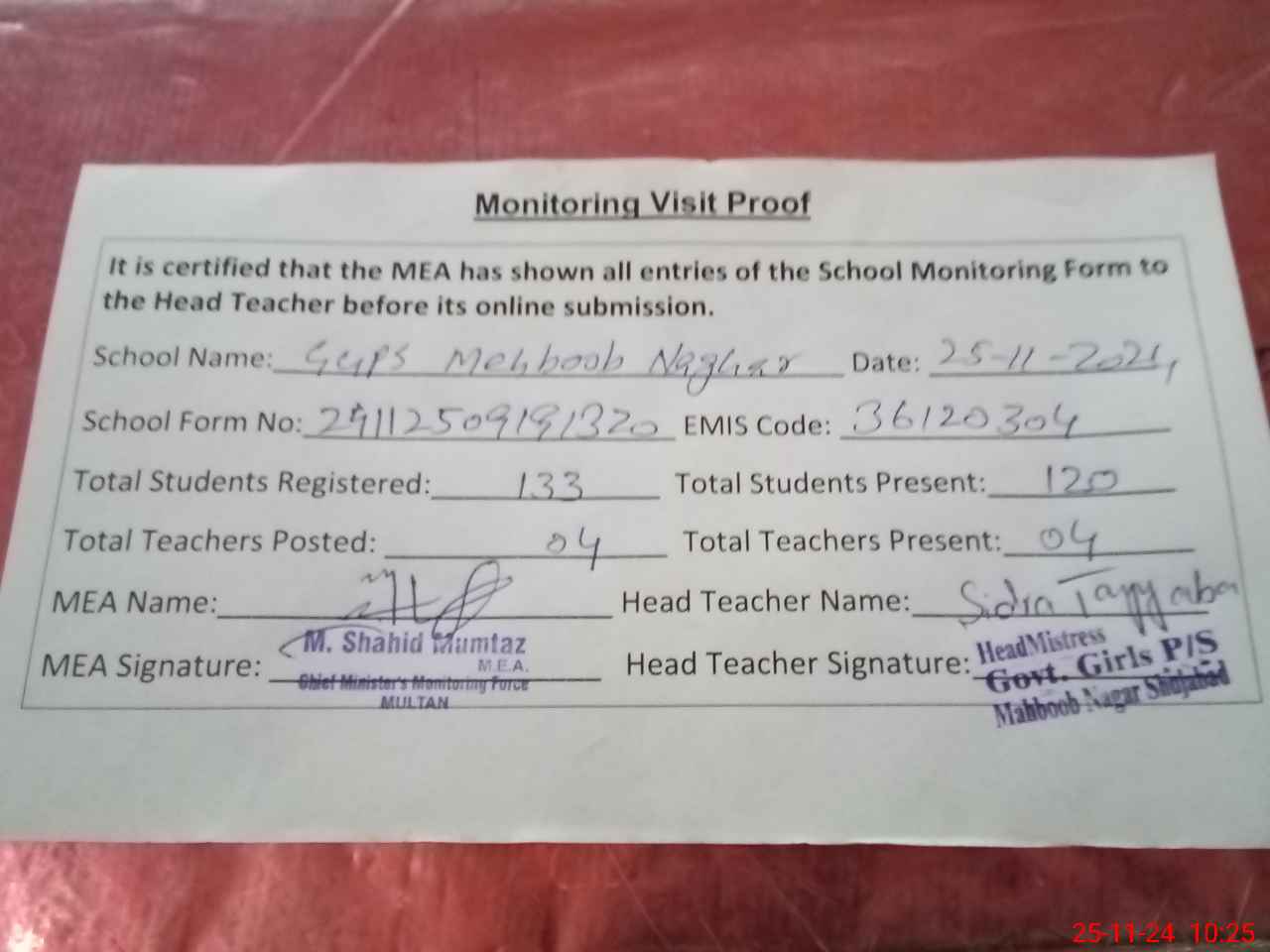 | EMIS Code: 36120304 | Name of School: GGPS MAHBOOB NAGAR TEH. SHUJABAD | |||
