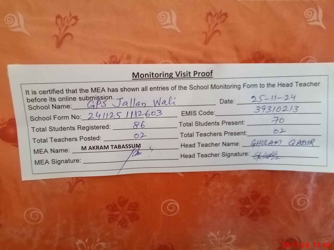 | Certified that this School was Inspected by the Undersigned MEA/DMO Today and the Information Stated Above is as Per Record. | |||||