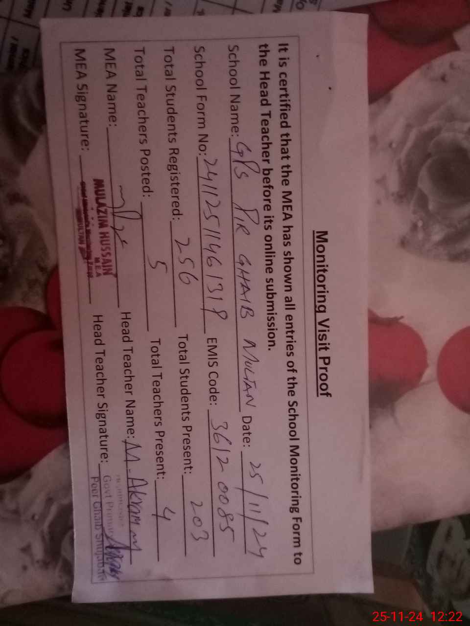 | EMIS Code: 36120085 | Name of School: GPS PIR GHAIB P/O PIR GHAIB MOUZA HILAL WAJEH | |||