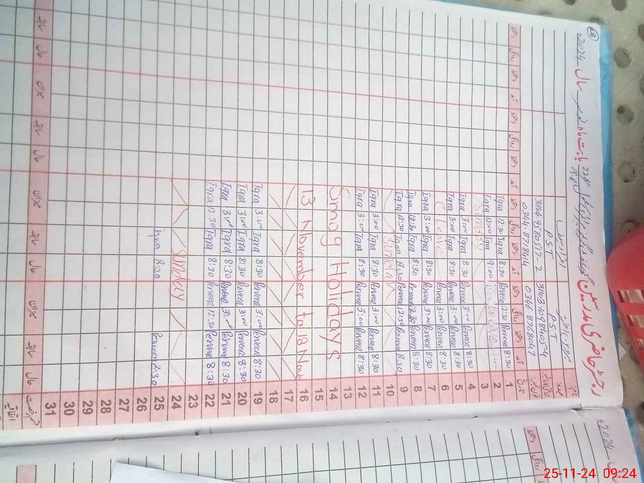 | CNIC | Full Name | Designation | R/C | Absence During Last Calender Month |