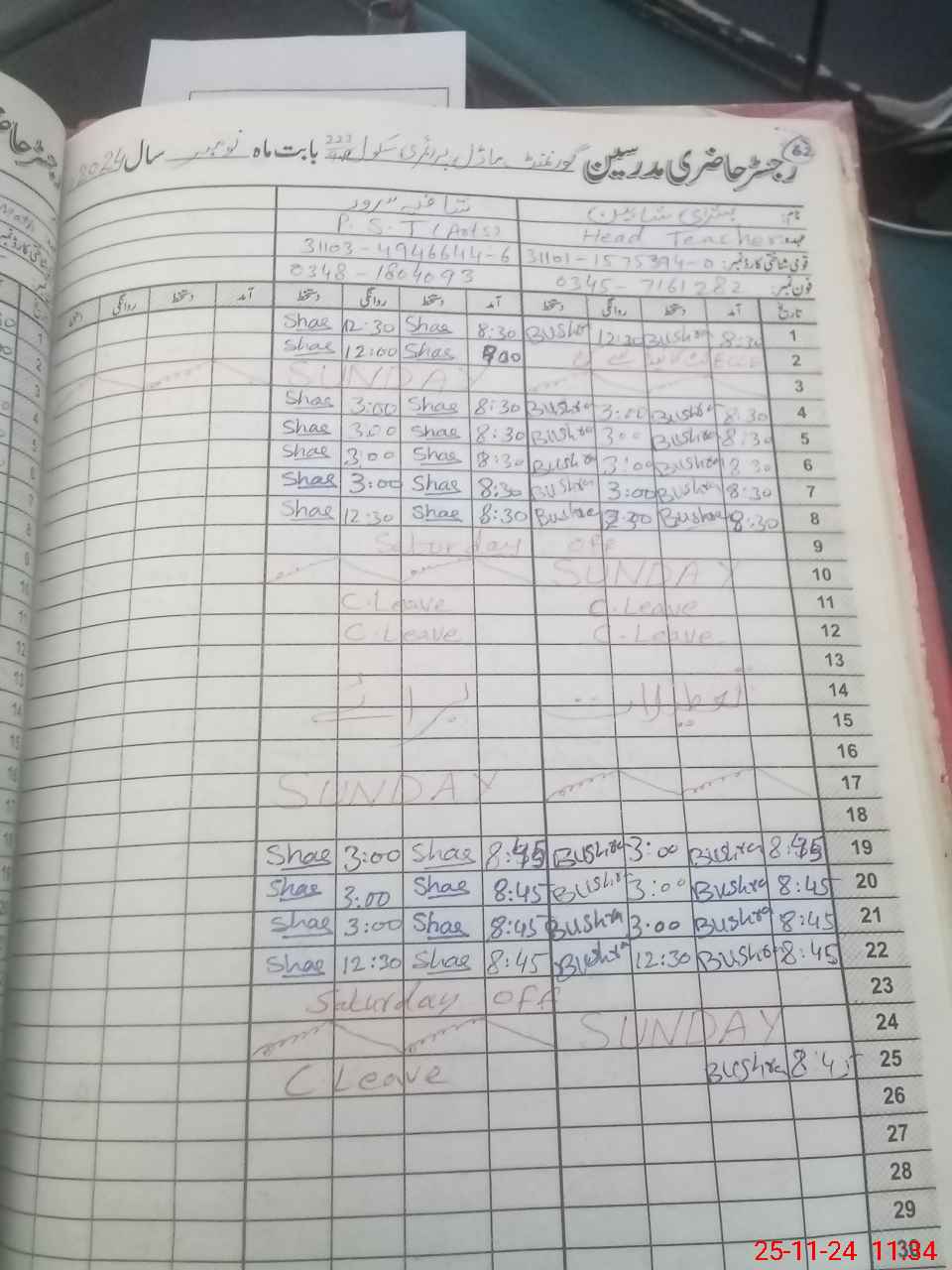 | Name: Bu**** Sh**** Designation: (School Headmaster's/Headmistress's) PST Phone/Cell Number: 03**** |