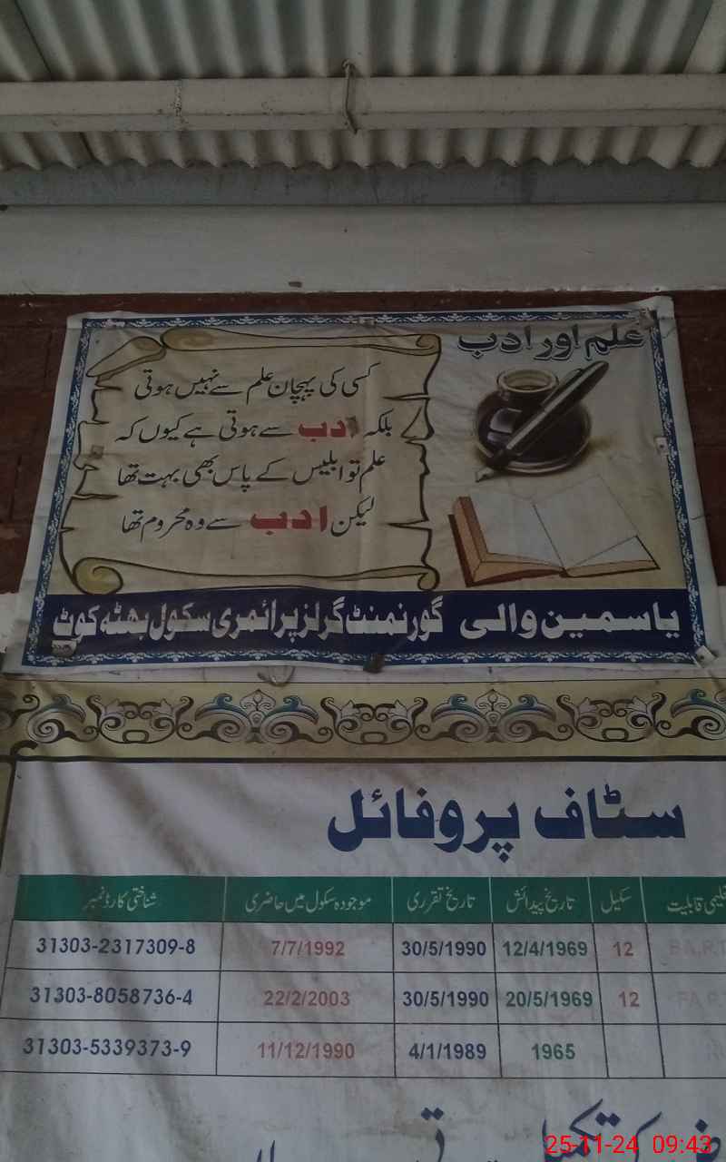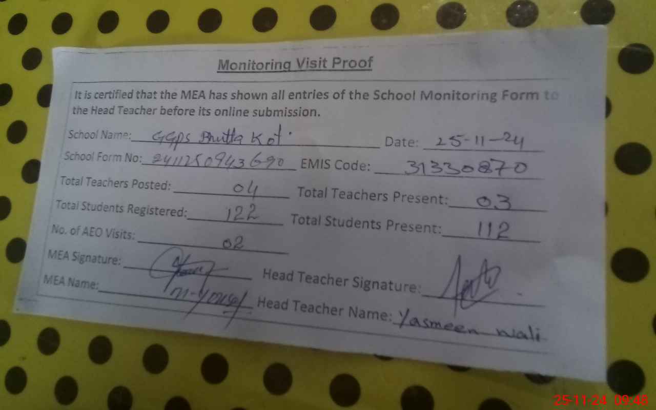 | EMIS Code: 31330870 | Name of School: GGPS BHUTTA KOT | |||