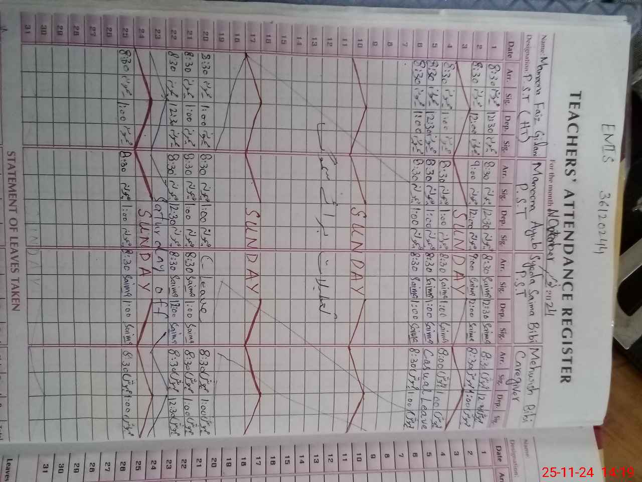 | Remarks (Use Separate Page if Required): Attendance is recorded from Roznamcha | |||||