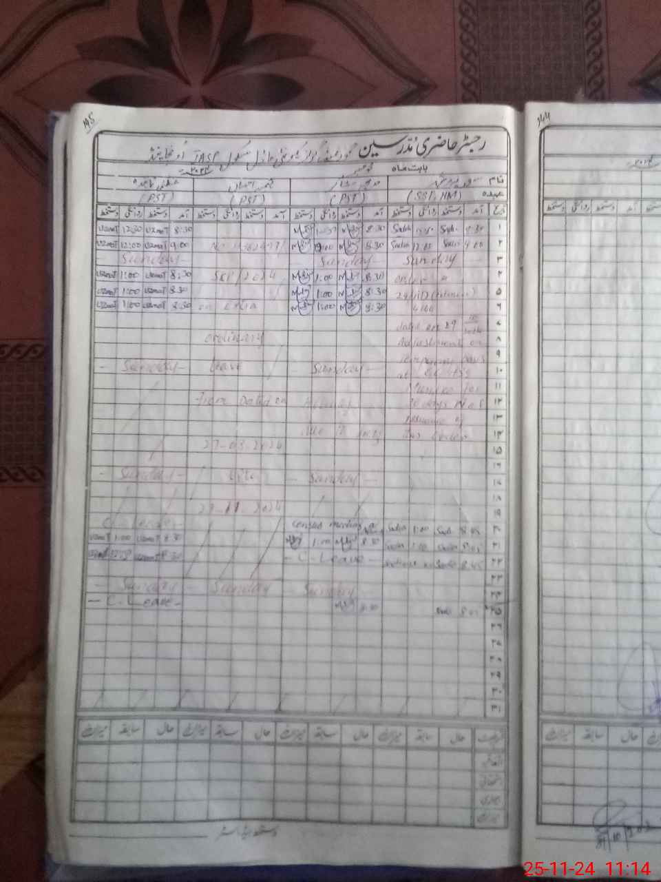 | CNIC | Full Name | Designation | R/C | Absence During Last Calender Month |