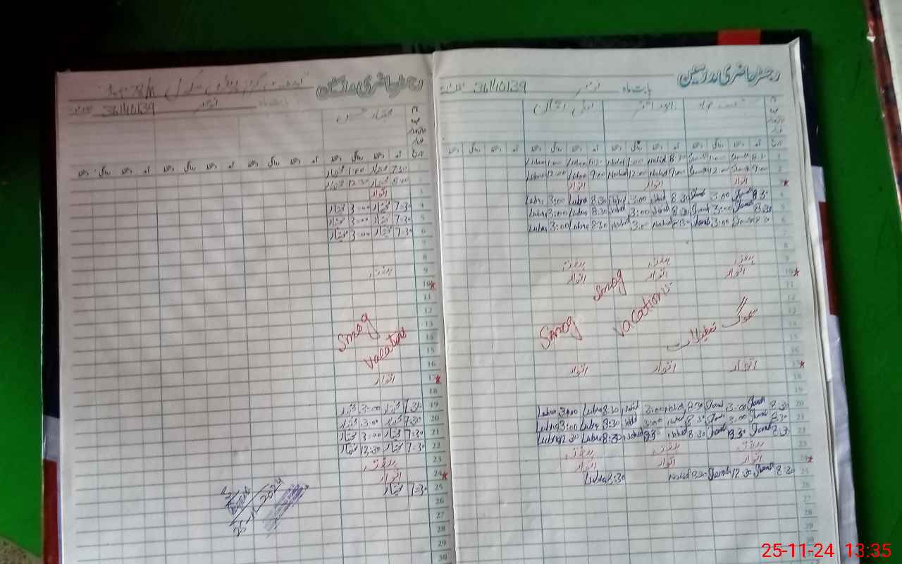 | CNIC | Full Name | Designation | R/C | Absence During Last Calender Month |