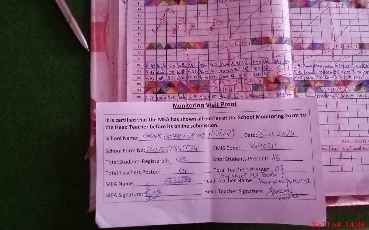 | EMIS Code: 36140211 | Name of School: GGPS UMER PUR 1 | |||