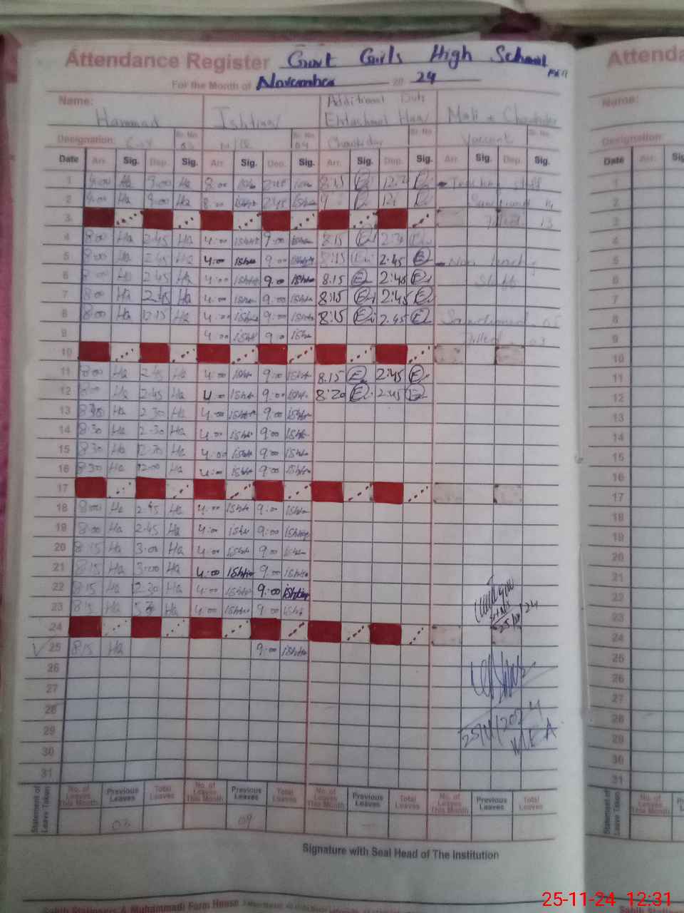 | CNIC | Full Name | Designation | R/C | Absence During Last Calender Month |