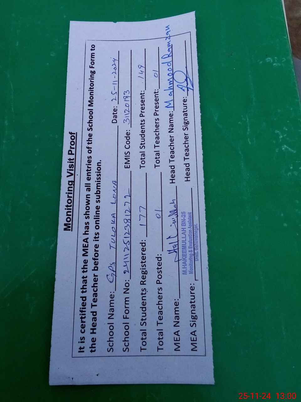 | EMIS Code: 31120193 | Name of School: GPS TULOKA LONA | |||