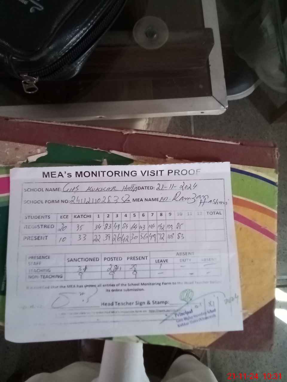 | EMIS Code: 36410026 | Name of School: GHSS KUKKAR HATTA, NAWAN SHEHR | |||