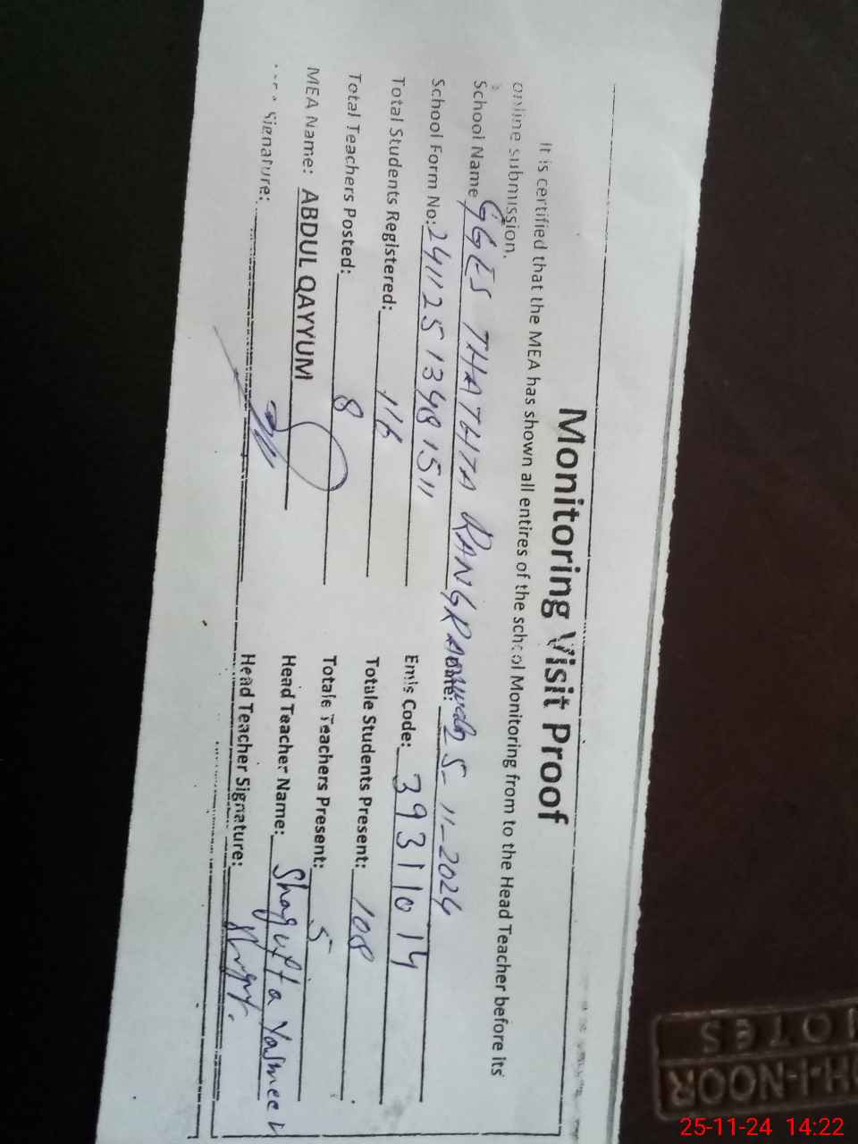 | EMIS Code: 39311014 | Name of School: GGES THATHA RANGRAN WALA | |||