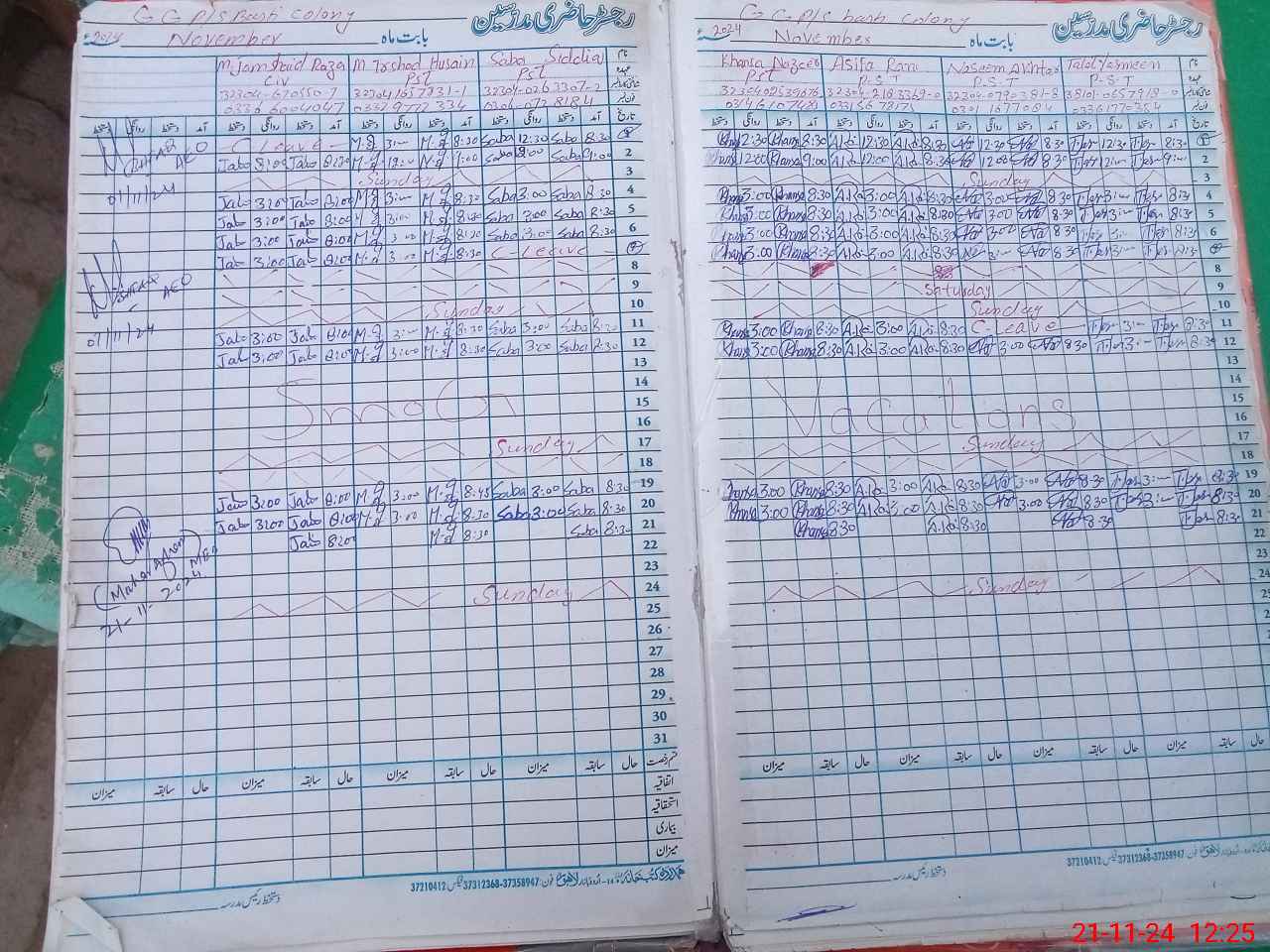 | CNIC | Full Name | Designation | R/C | Absence During Last Calender Month |