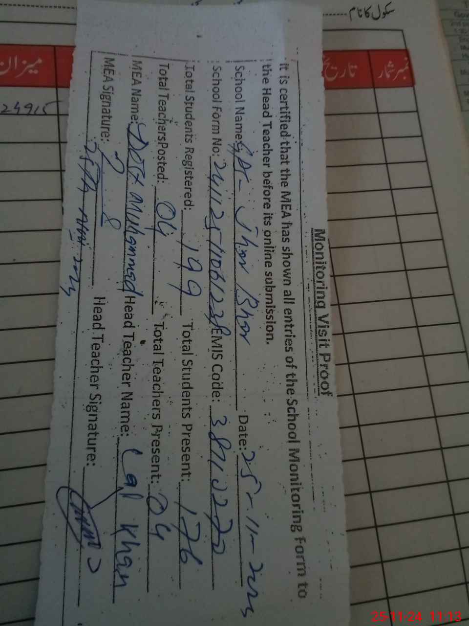 | Certified that this School was Inspected by the Undersigned MEA/DMO Today and the Information Stated Above is as Per Record. | |||||