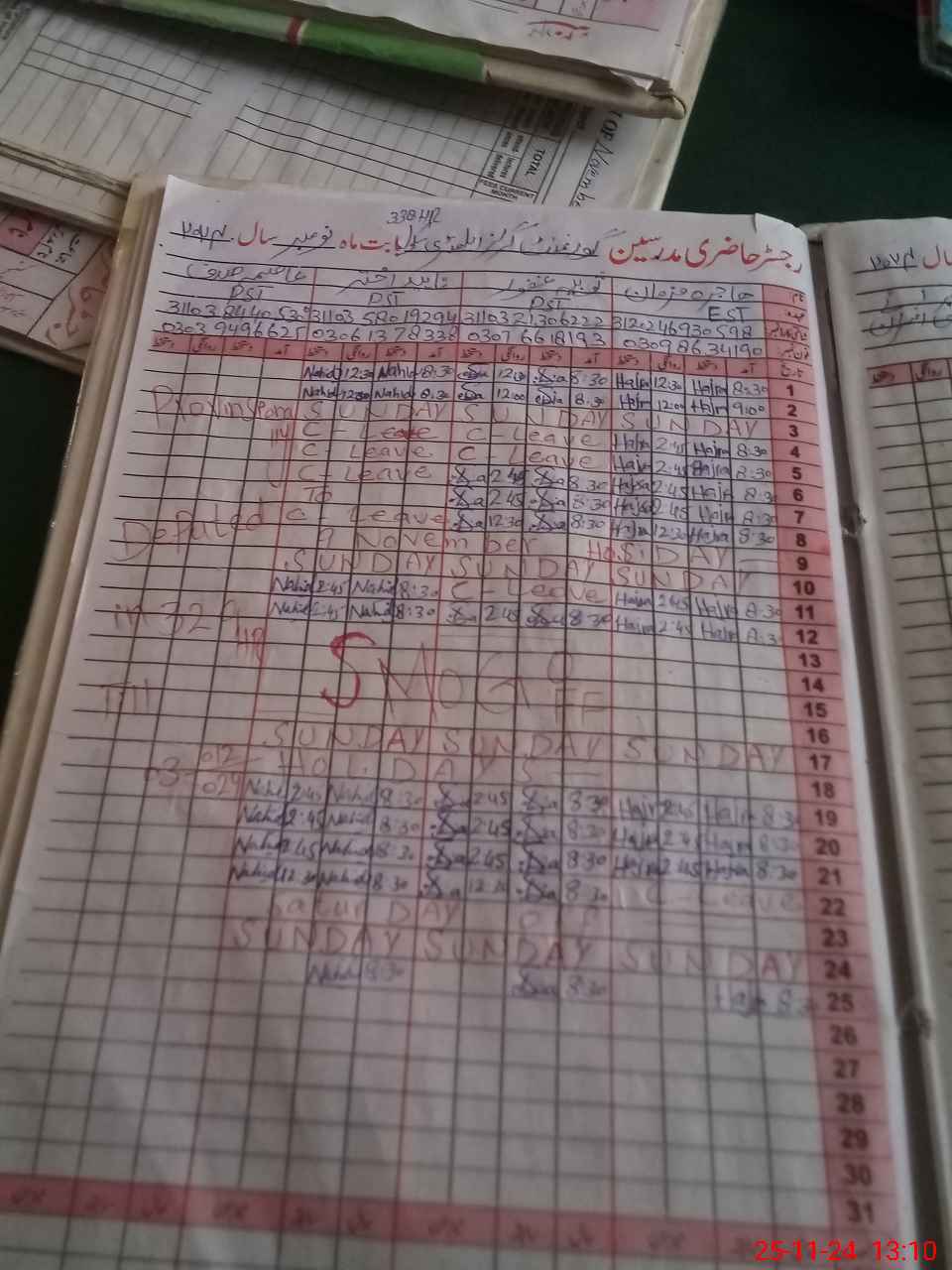 | CNIC | Full Name | Designation | R/C | Absence During Last Calender Month |