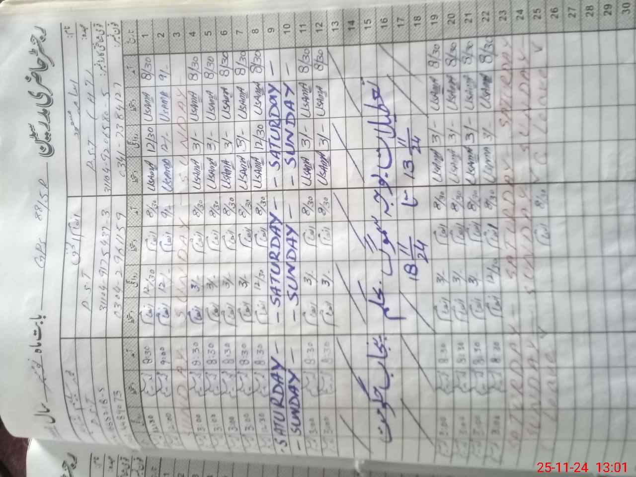| CNIC | Full Name | Designation | R/C | Absence During Last Calender Month |