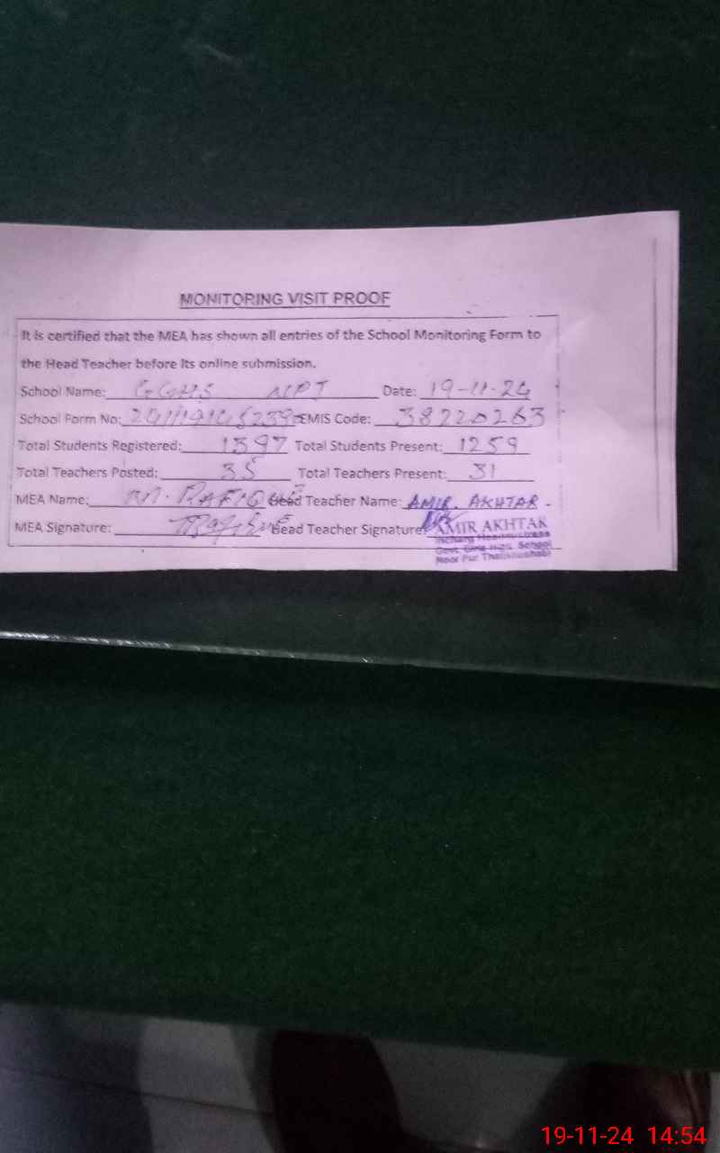 | Certified that this School was Inspected by the Undersigned MEA/DMO Today and the Information Stated Above is as Per Record. | |||||