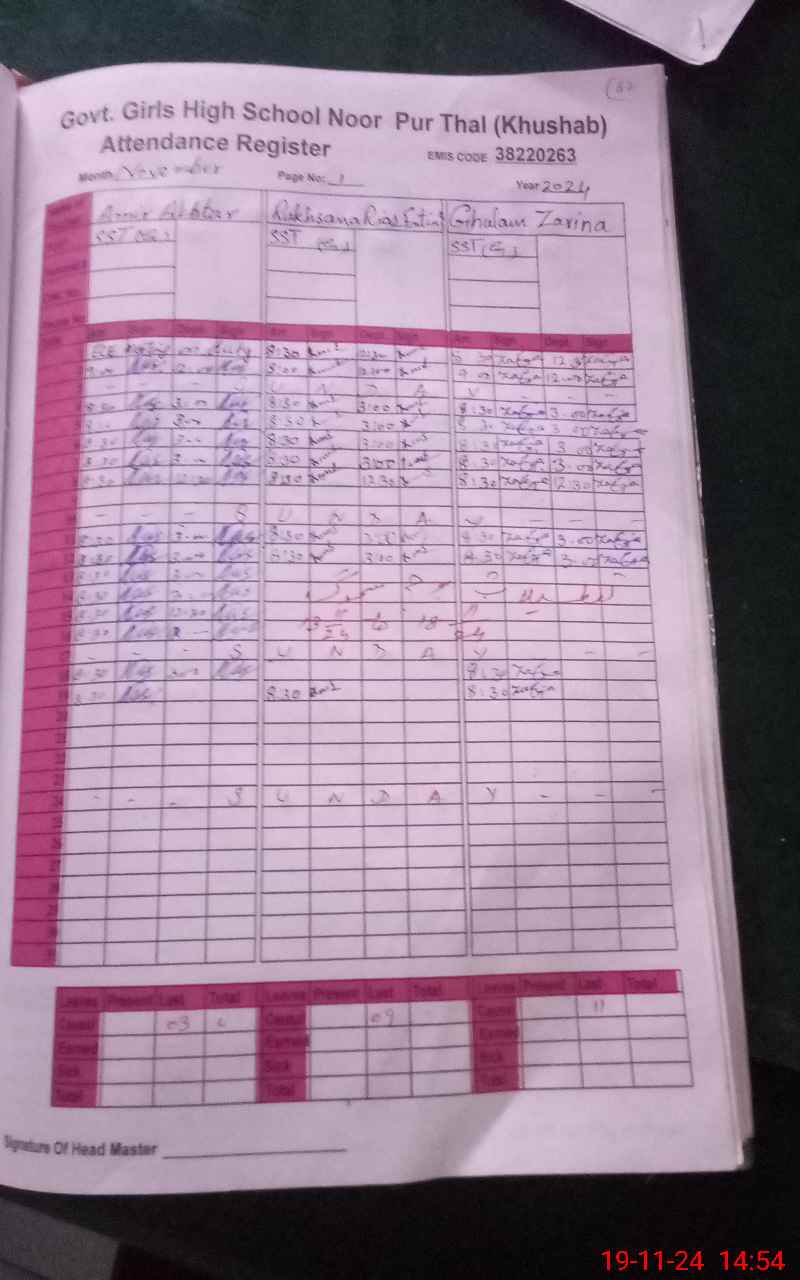 | EMIS Code: 38220263 | Name of School: GGHS NOOR PUR THAL | |||