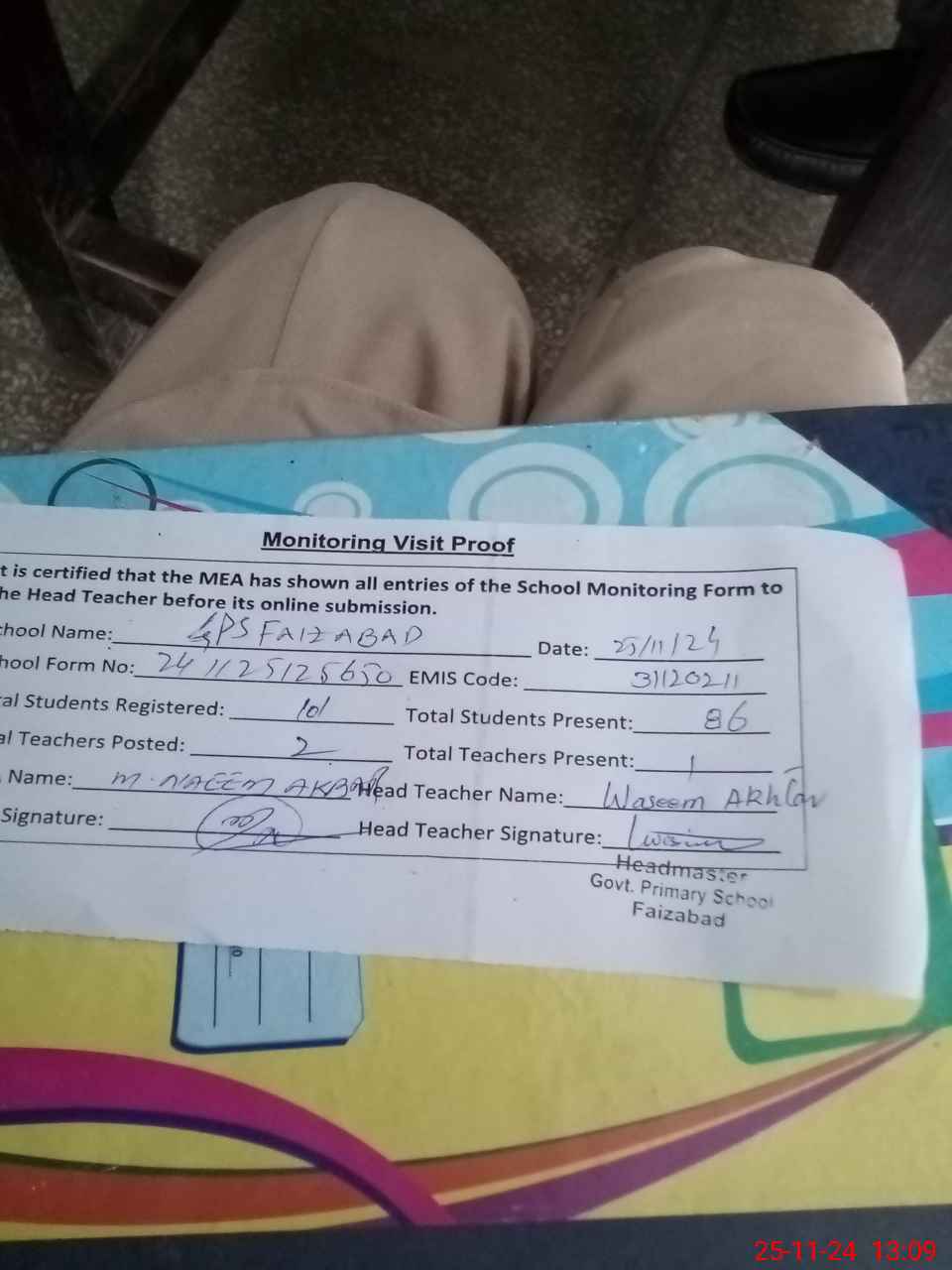 | EMIS Code: 31120211 | Name of School: GPS FAIZ ABAD | |||