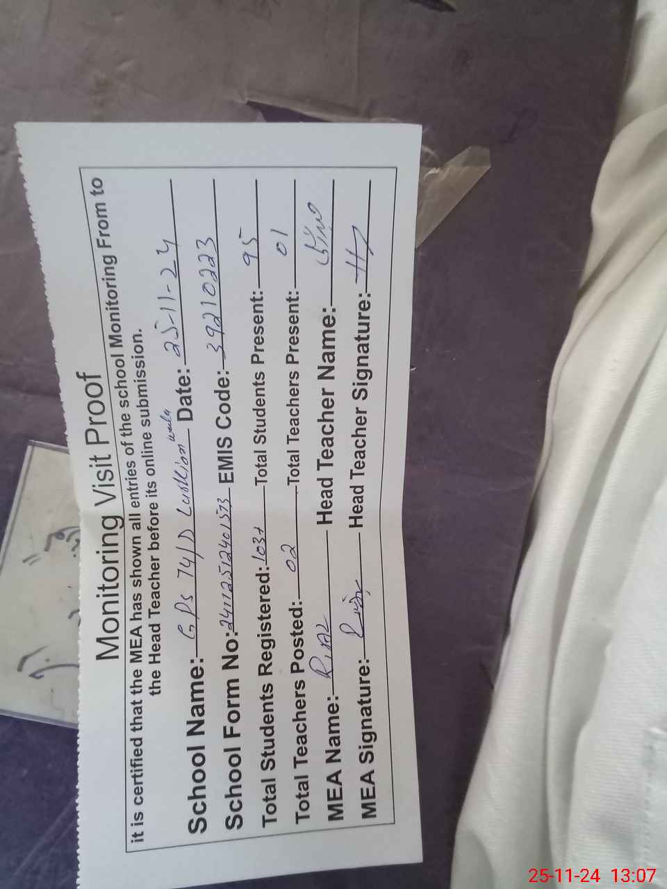 | EMIS Code: 39210223 | Name of School: GPS 74 D LURKIAN WALA | |||