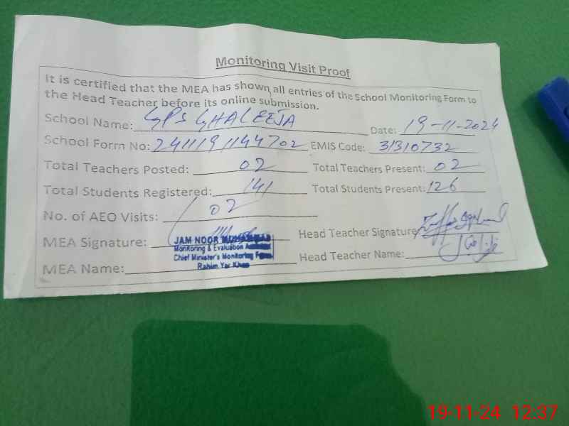 | EMIS Code: 31310732 | Name of School: GPS GHALEEJA | |||