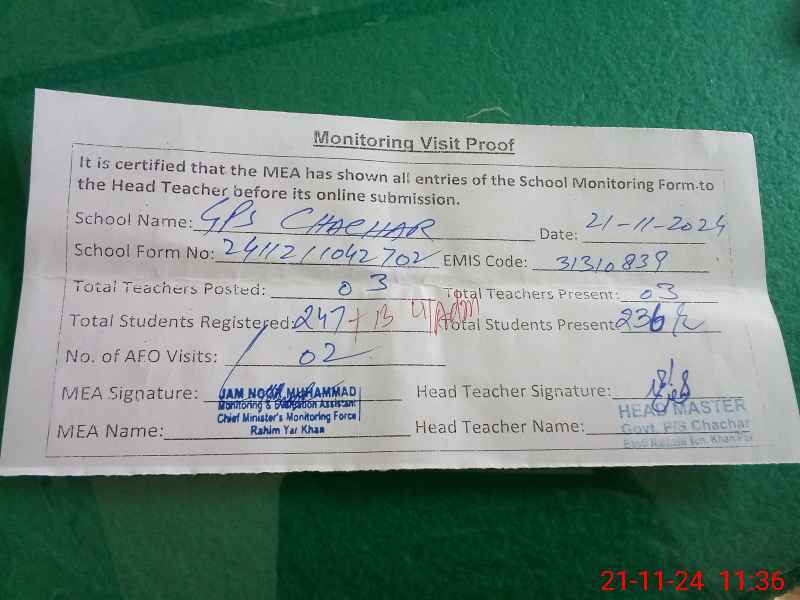 | EMIS Code: 31310839 | Name of School: GPS CHAHCHAR | |||