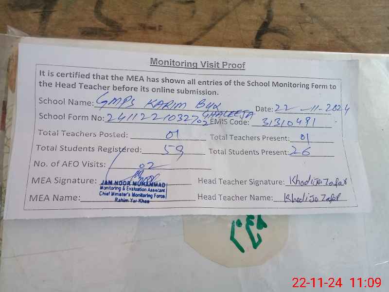 | EMIS Code: 31310491 | Name of School: GMPS KARIM BUX GHALEJA | |||