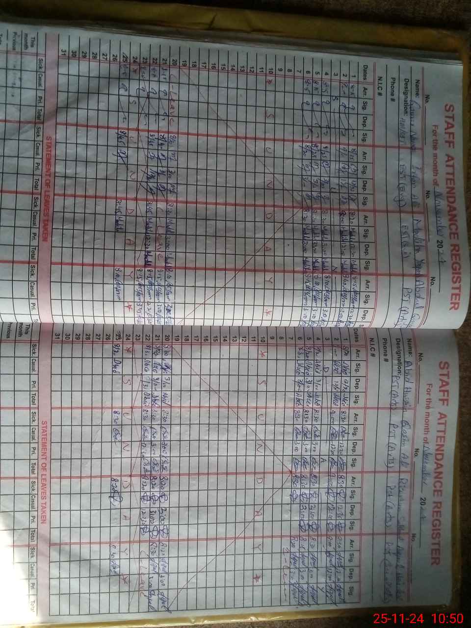 | CNIC | Full Name | Designation | R/C | Absence During Last Calender Month |