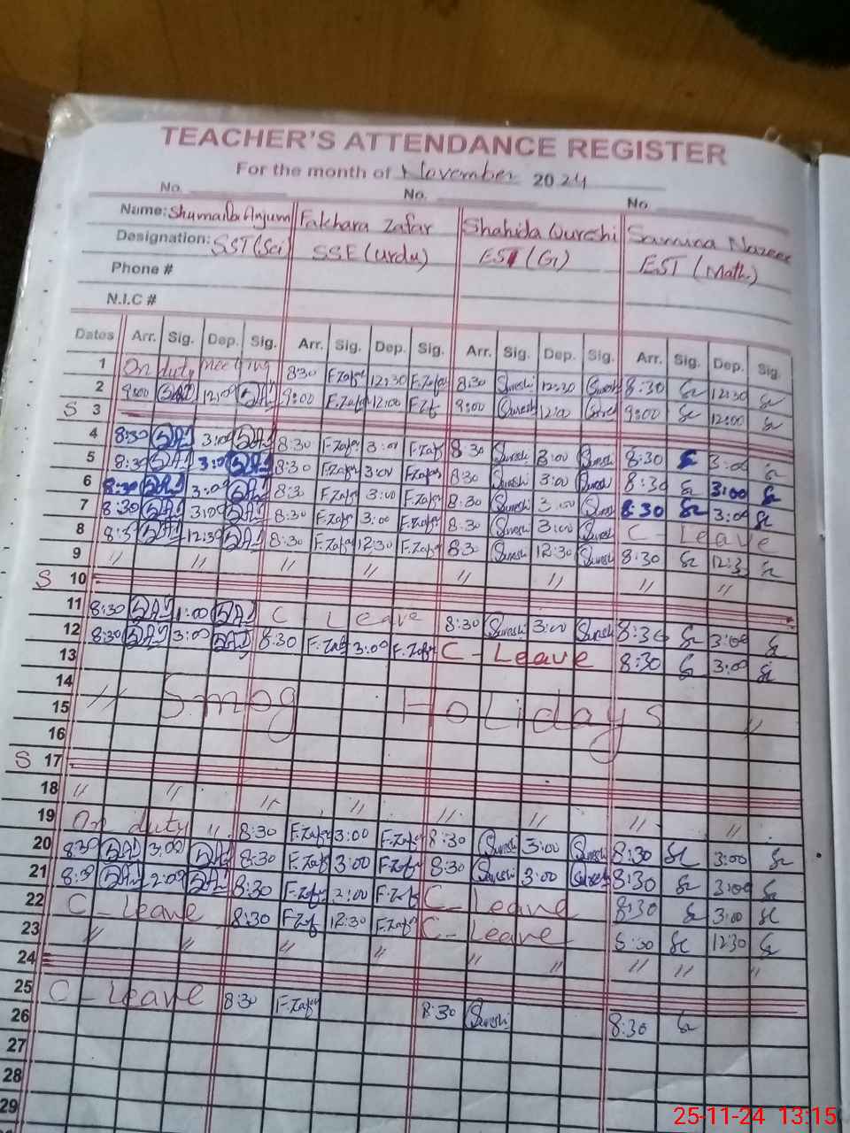 | CNIC | Full Name | Designation | R/C | Absence During Last Calender Month |