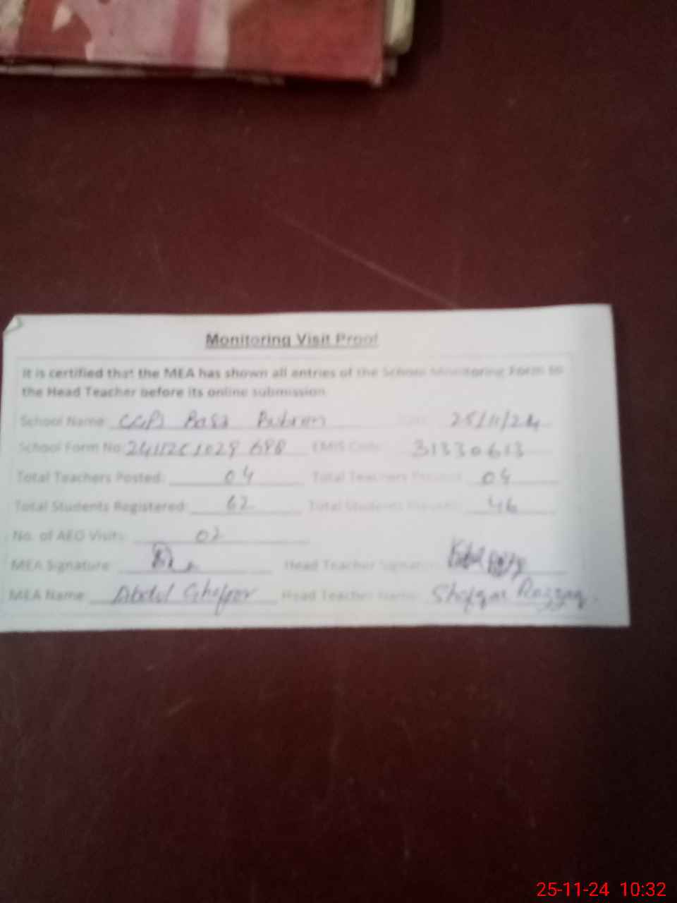 | Certified that this School was Inspected by the Undersigned MEA/DMO Today and the Information Stated Above is as Per Record. | |||||