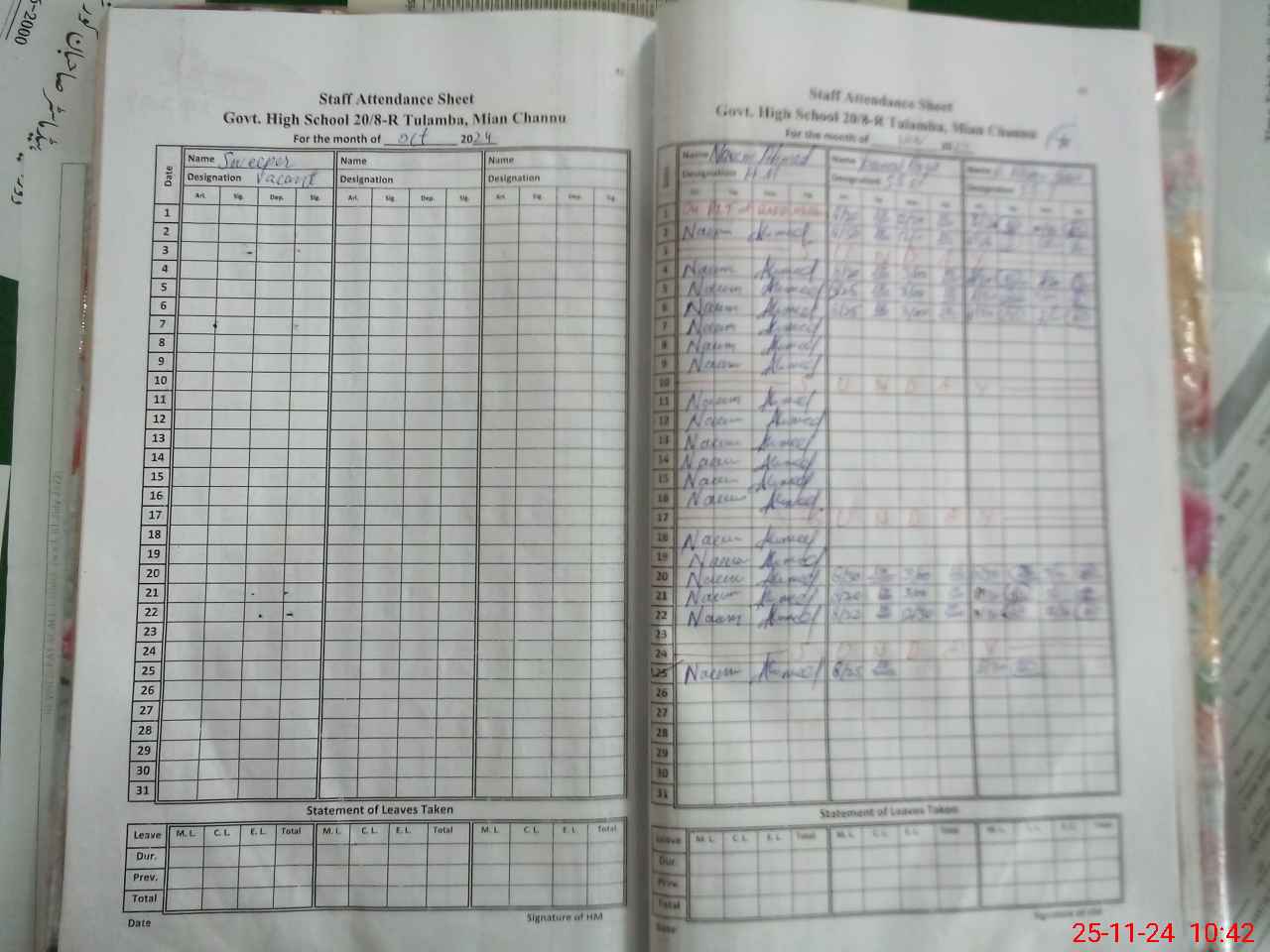 | Remarks (Use Separate Page if Required): LA Hassan Murtza found absent throughout the month of November 2024 | |||||