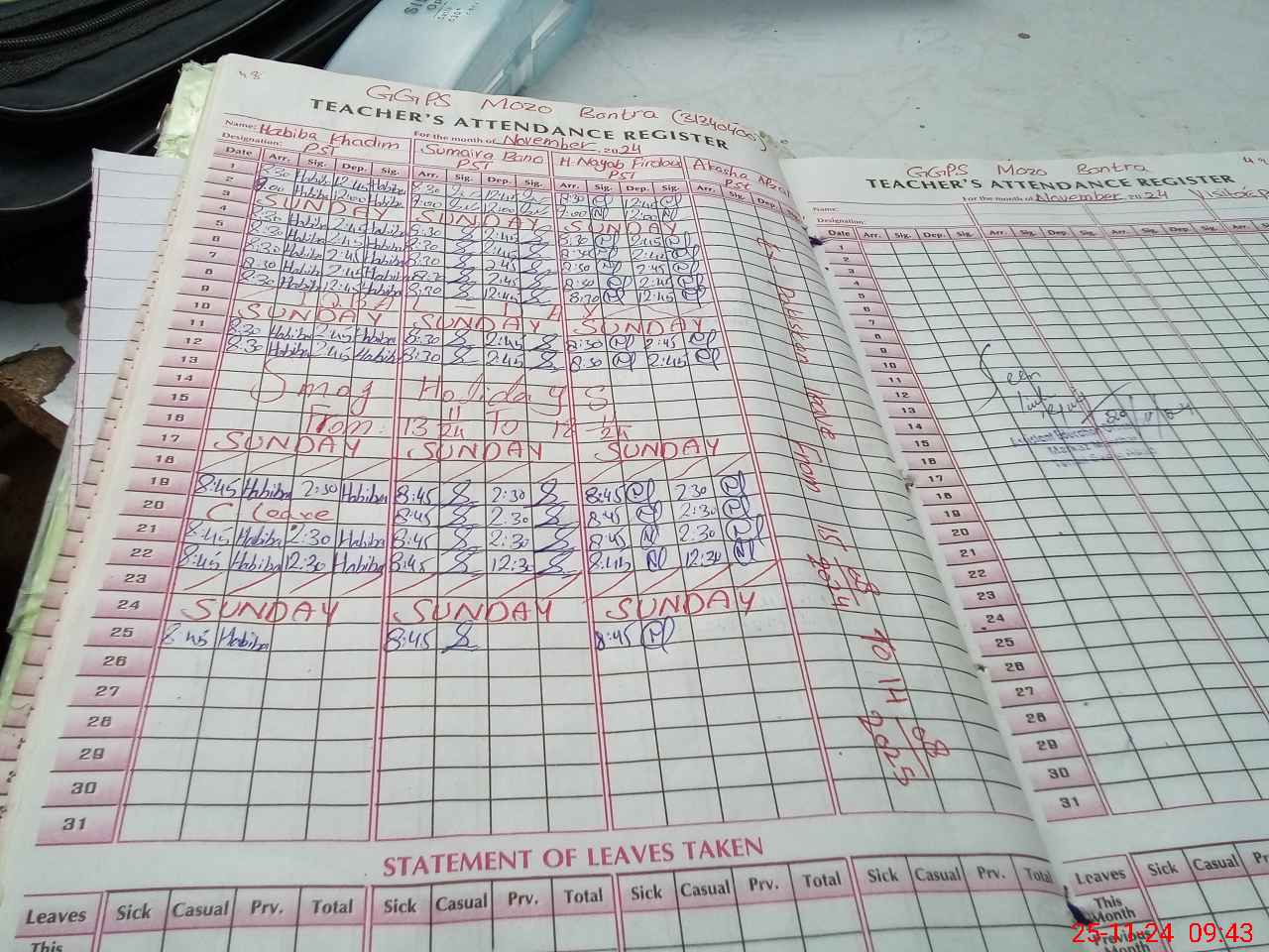 | Leave | Duty | Absent | Maternity | Medical | Ex- Pak |