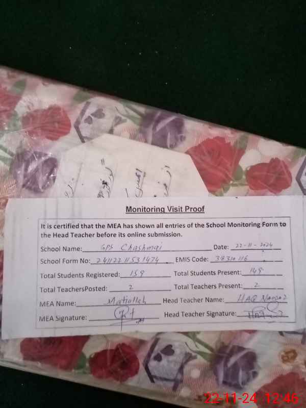 | EMIS Code: 38310116 | Name of School: GPS CHASHMAI | |||