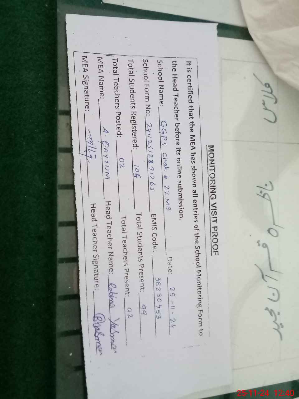 | Certified that this School was Inspected by the Undersigned MEA/DMO Today and the Information Stated Above is as Per Record. | |||||