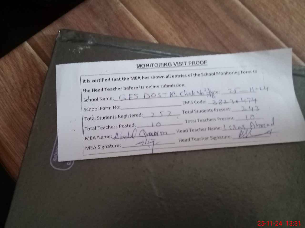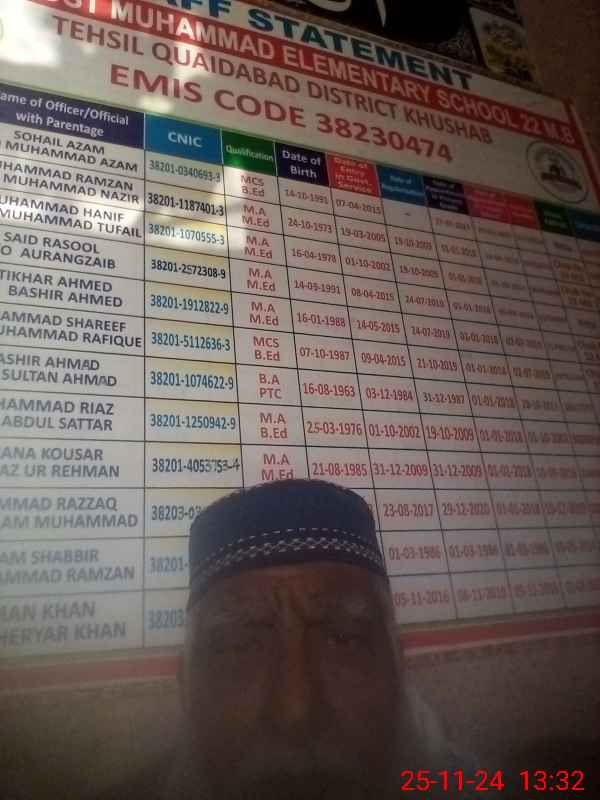 | EMIS Code: 38230474 | Name of School: GES DOST MUHAMMAD CHAK NO. 22 MB | |||
