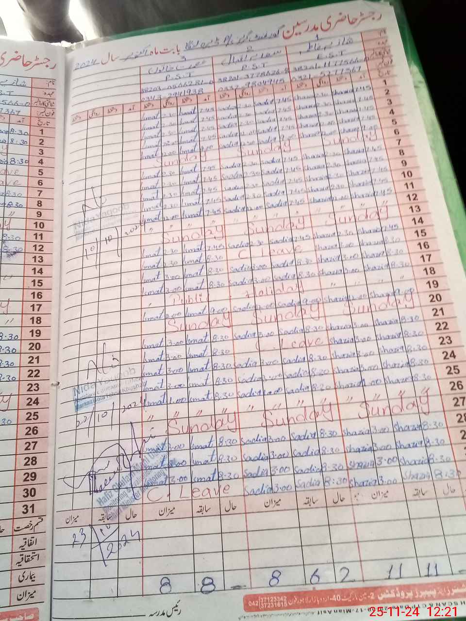 | Name: Sa**** Iq**** Designation: (School Headmaster's/Headmistress's) Pst Phone/Cell Number: 03**** |