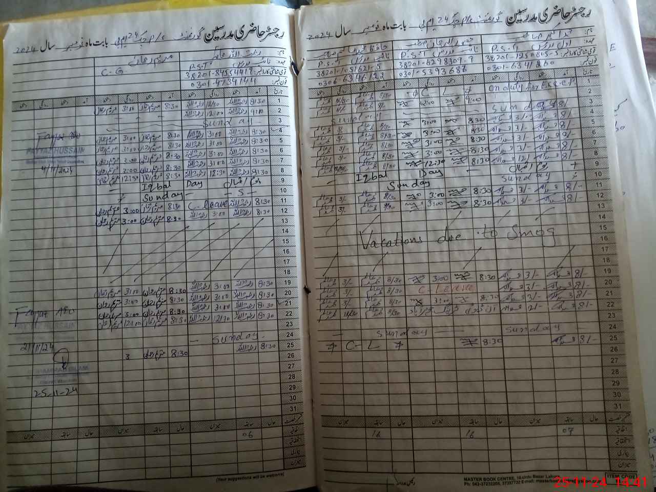 | CNIC | Full Name | Designation | R/C | Absence During Last Calender Month |