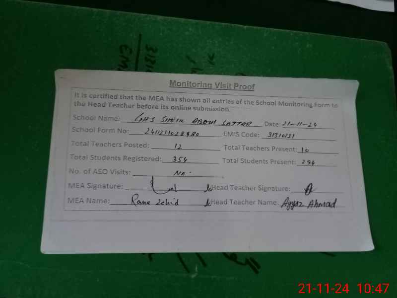 | EMIS Code: 31310131 | Name of School: GHS MOADIB SHEIKH ABDUL SATTAR | |||