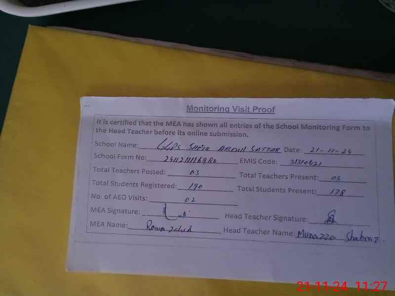 | EMIS Code: 31310421 | Name of School: GGPS SHAIKH ABDUL SATTAR | |||