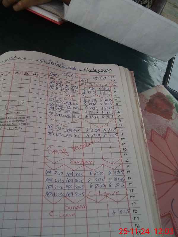 | CNIC | Full Name | Designation | R/C | Absence During Last Calender Month |