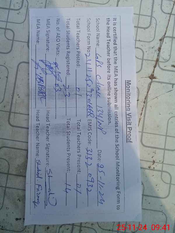 | EMIS Code: 31320932 | Name of School: GPS CHAK NO. 134/NP | |||