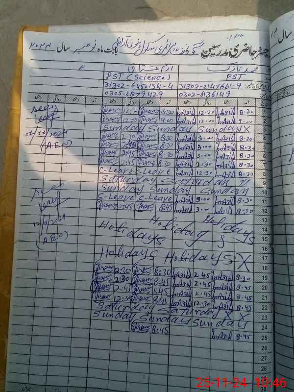 | Name: MU**** NA**** Designation: (School Headmaster's/Headmistress's) PST/PTC/JV Phone/Cell Number: 03**** |