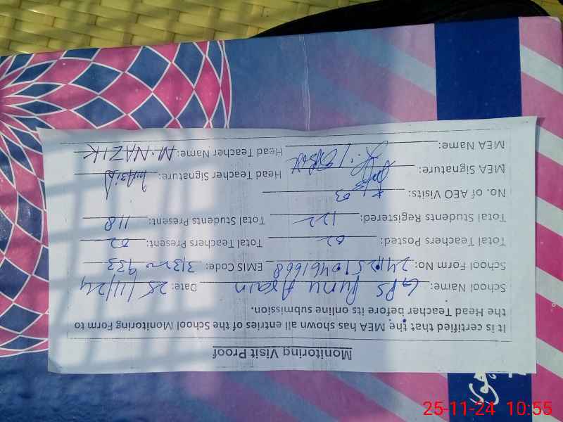| EMIS Code: 31320933 | Name of School: GPS PUNU ARAIN | |||