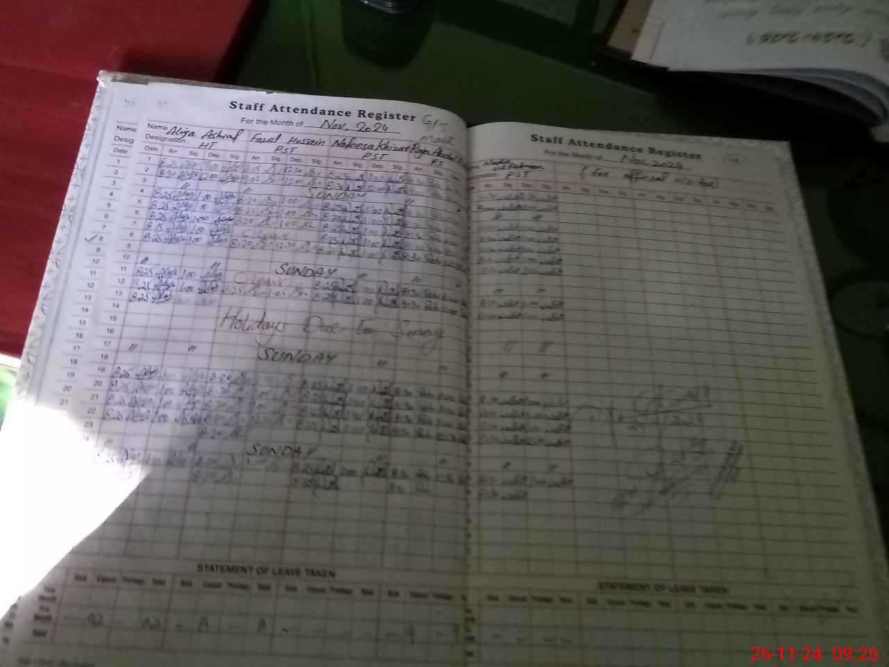 | Leave | Duty | Absent | Maternity | Medical | Ex- Pak |