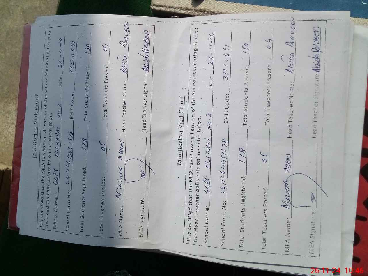 | EMIS Code: 33220691 | Name of School: GGPS KULKURAI NO. 2 | |||