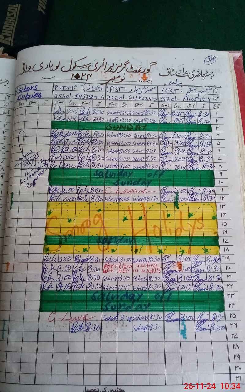 | CNIC | Full Name | Designation | R/C | Absence During Last Calender Month |
