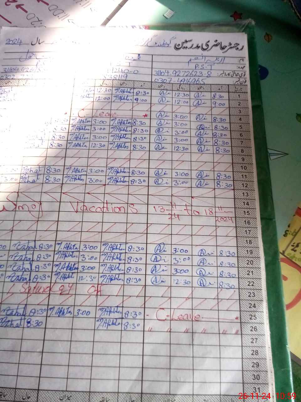 | CNIC | Full Name | Designation | R/C | Absence During Last Calender Month |