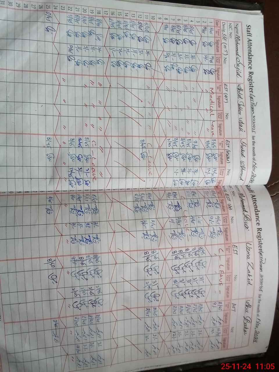 | CNIC | Full Name | Designation | R/C | Absence during last cal. month |