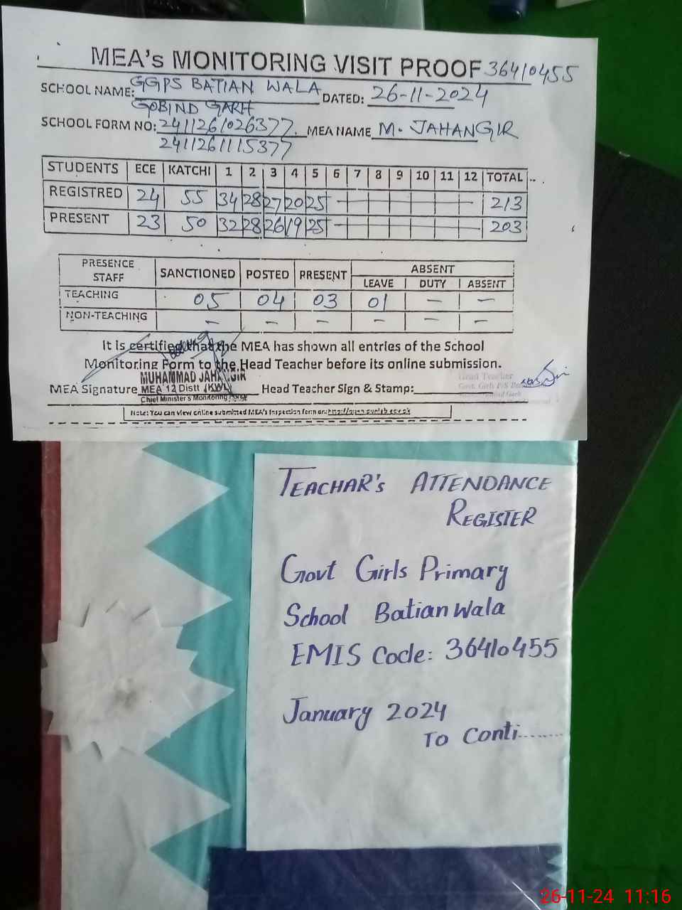 | EMIS Code: 36410455 | Name of School: GGPS BATIAN WALA, ABDUL HAKIM | |||