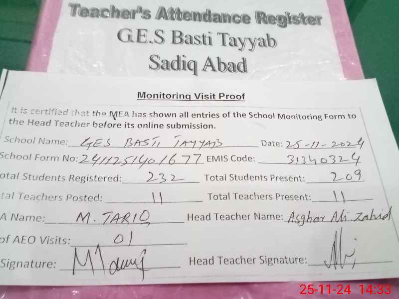 | EMIS Code: 31340324 | Name of School: GES BASTI TAYYAB | |||