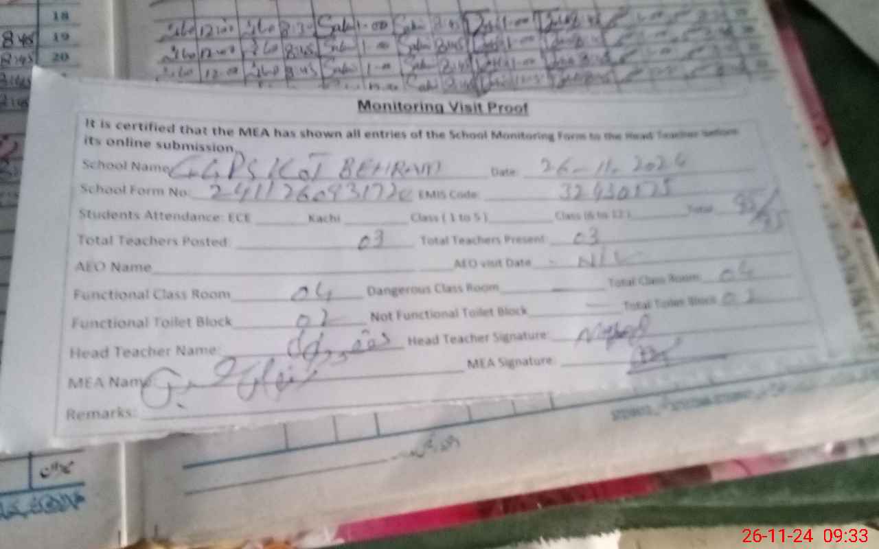 | EMIS Code: 32430175 | Name of School: GGPS KOT BEHRAM | |||